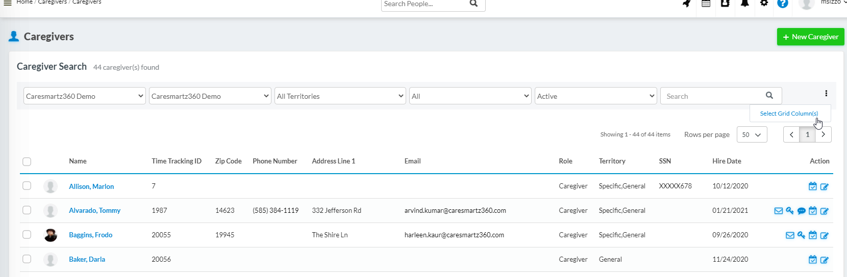 That is odd. I have a different "Caregiver Search" screen that does not have a zip code column. Am I at the wrong screen?