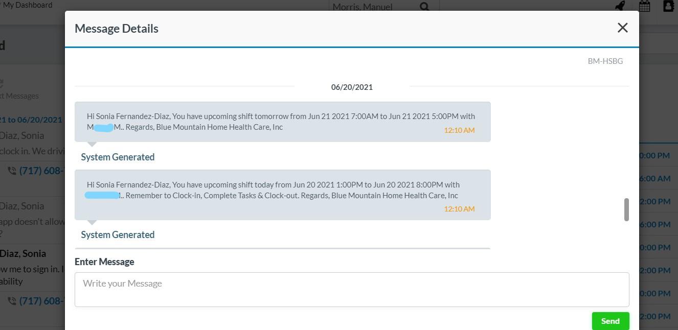 CareSmartz is automatically sending 2 messages to caregivers at 12:10am for 2 different shifts. One message is for the shift for that day and the second message is for the 'reminder' for the next day shifts. Most of our staff is regular staff and they work 4-5 shifts per week. The 2 messages arriving at the same time sometime can be misleading. Is there anyway to change or modify this. Is there a better option than sending 2 messages at the same time. Also, I have highlighted this before that the timing of the text messages need to be adjusted so that care givers get the message at a decent/appropriate time. These messages are going out at 12am (US Eastern Time Zone). Some care givers get irritated when they get messages in the middle of the night. A better time would be sometime like 6-8pm text message for the next day shift.